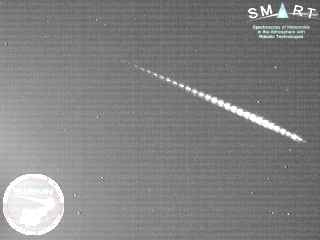 Sum-pixel image of the fireball as recorded by one of the meteor cameras operated by SWEMN. |