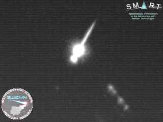 Imagen en formato reducido de la bola de fuego tomada desde la estación de detección de meteoros ubicada en